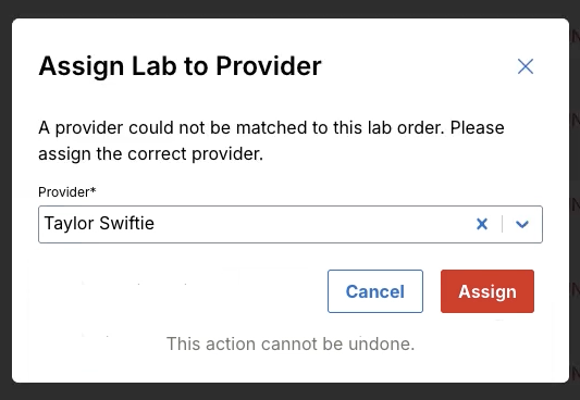 The provider assigned to the client will receive the lab results in their account, and anyone with access to the lab results can edit the ordering provider for a lab test.