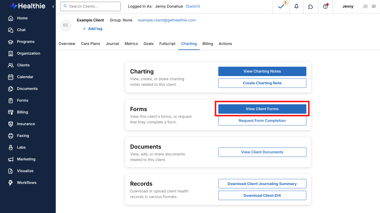 Providers can request clients to complete this form, or add it to an intake flow for client onboarding.