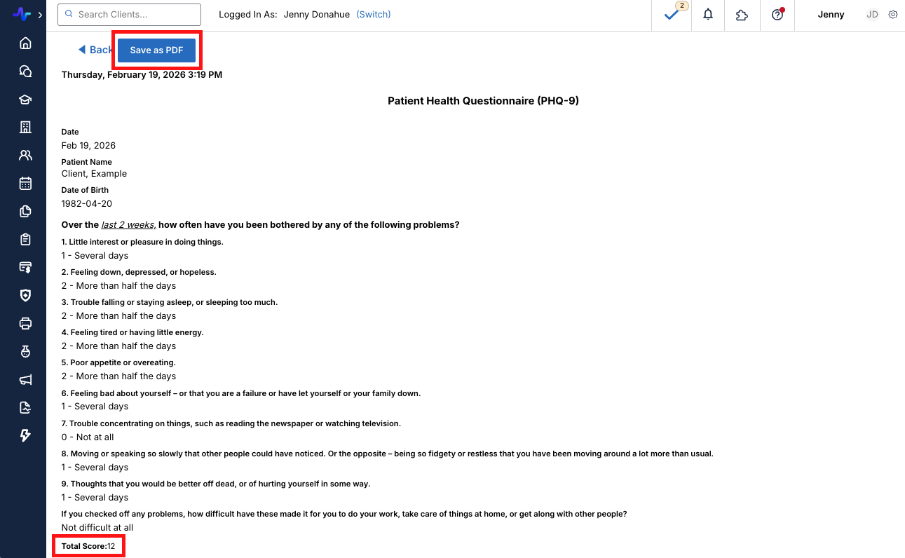 - A PDF version of the completed client form can be saved by clicking Save as PDF.