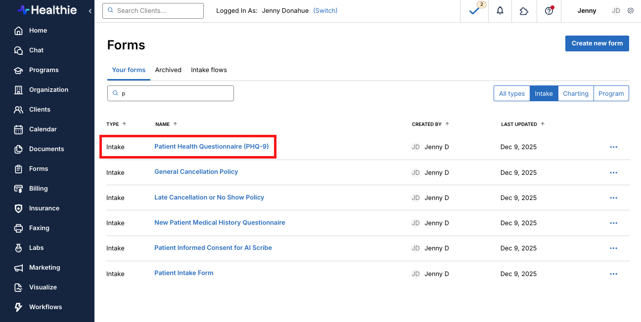 - Navigate to Forms > Patient Health Questionnaire (PHQ-9)