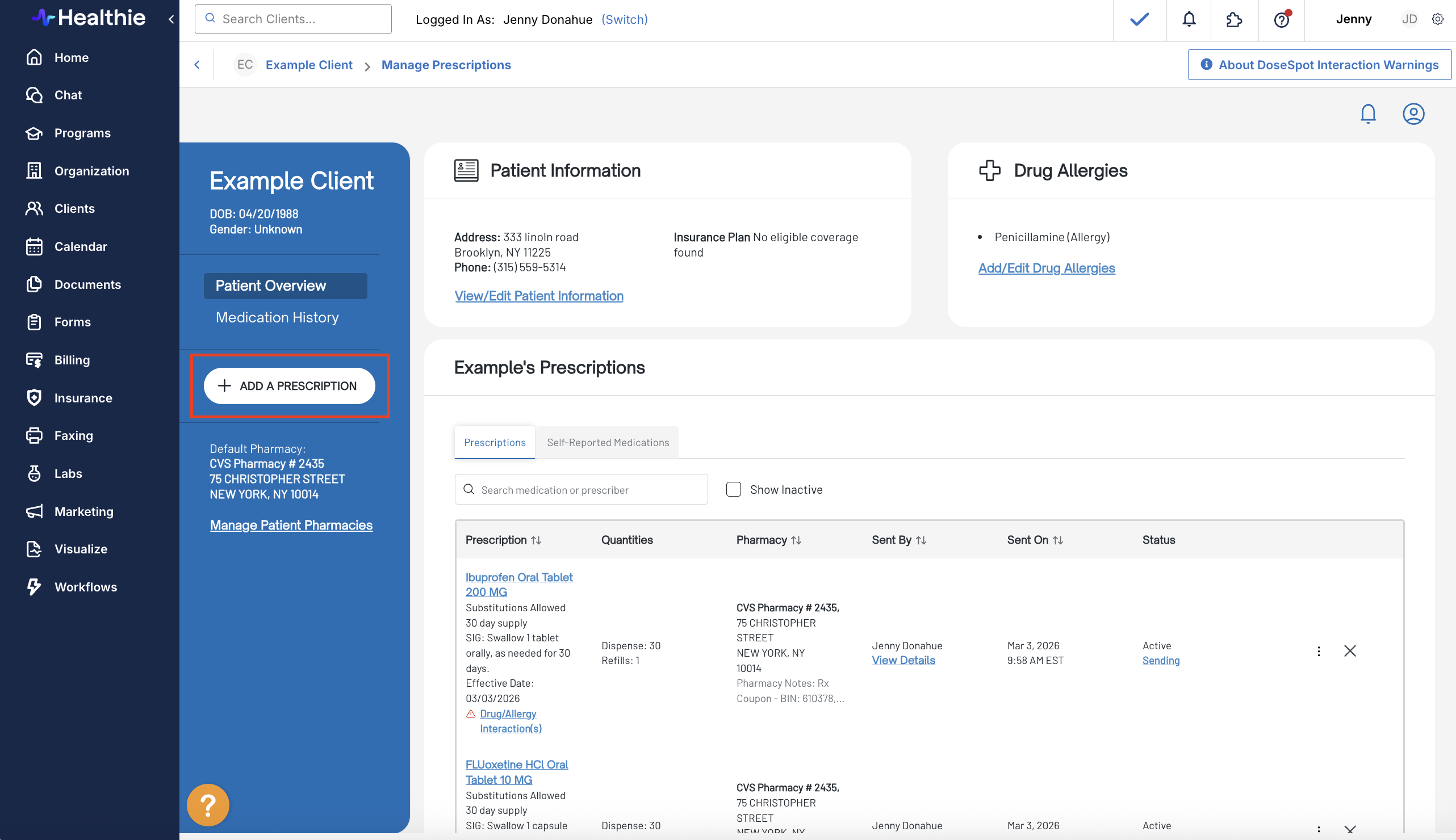 - Navigate to the Client Profile > E-Prescriptions > Order and Manage