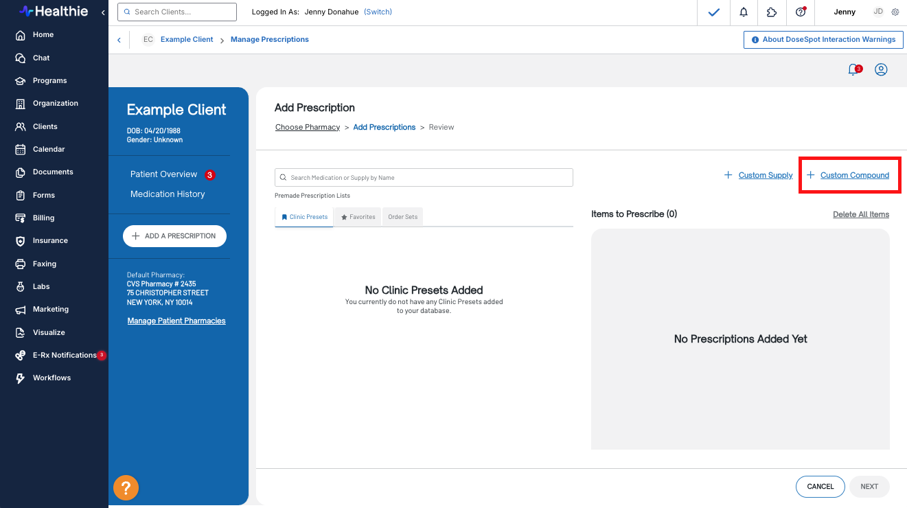 Note: the approval to add a medication comes from Lexicomp directly and the turnaround time can vary. Neither Healthie nor Dosespot are able to speed up this process, unfortunately.