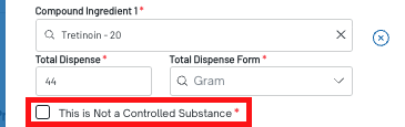 - If you select to add a custom ingredient, you must confirm that it is not a controlled substance by checking the box to confirm