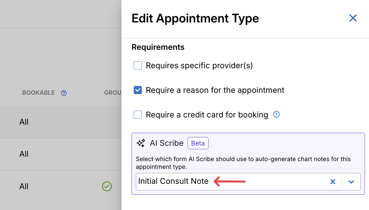 Note: Any appointments already booked using a Scribe appointment type will be enabled automatically for Scribe. You won't need to go back and edit appointments that are already on the calendar.