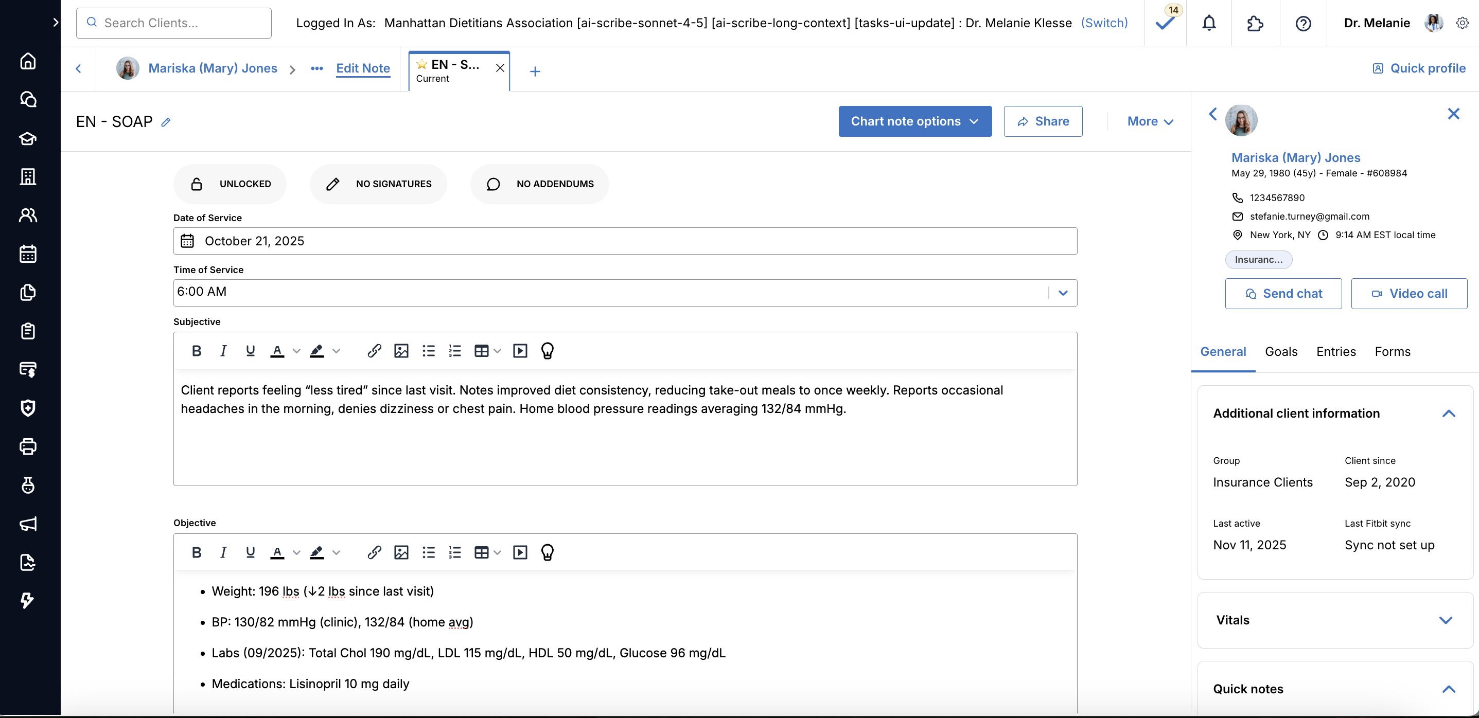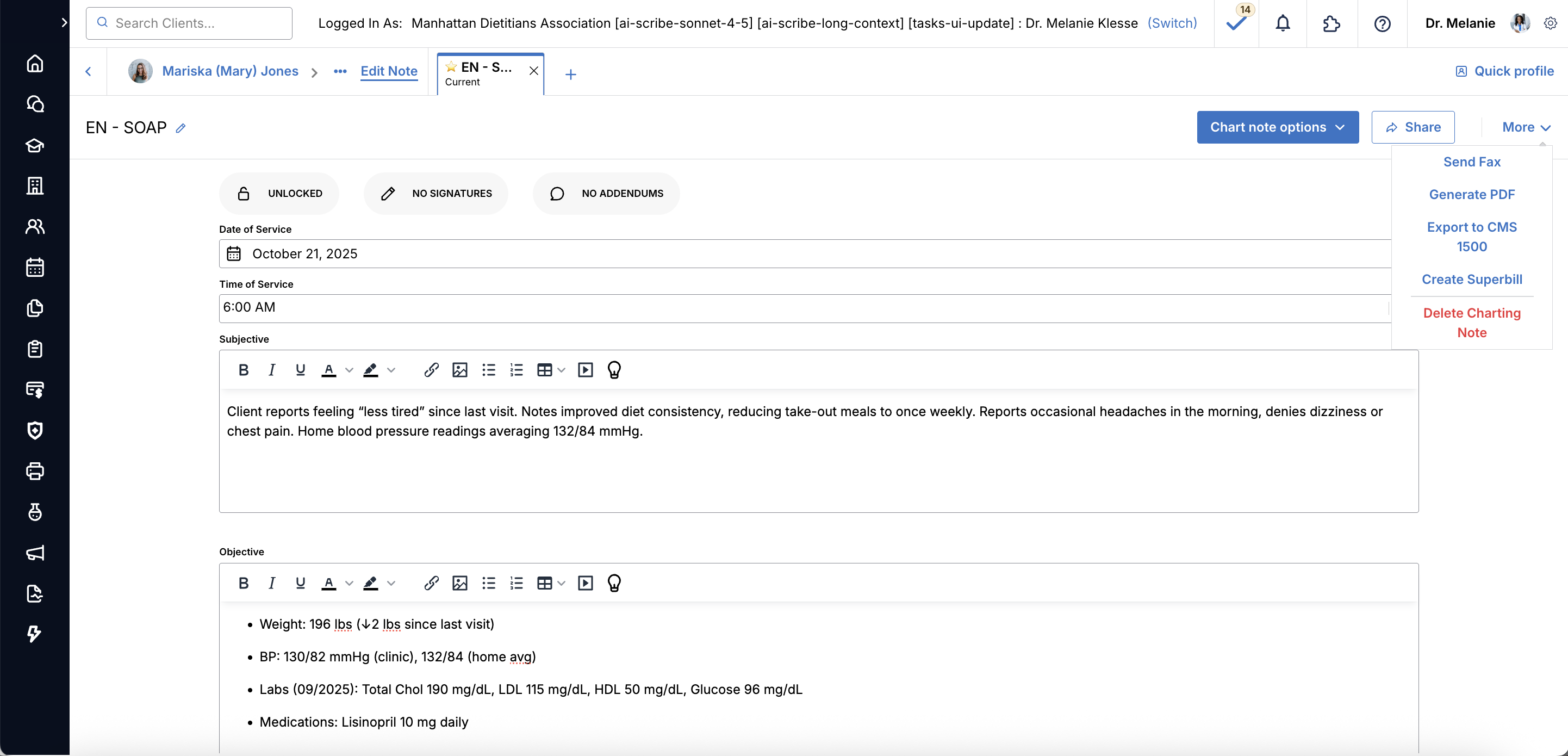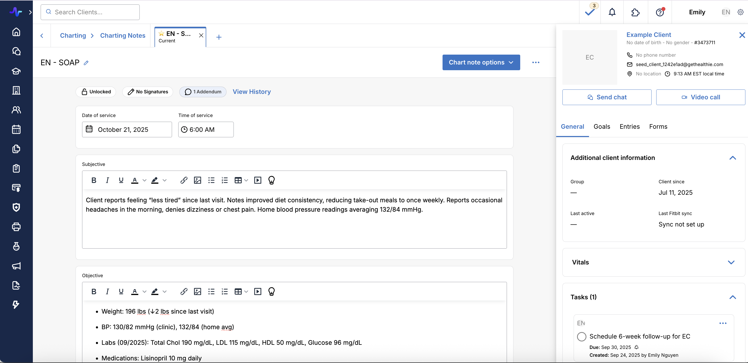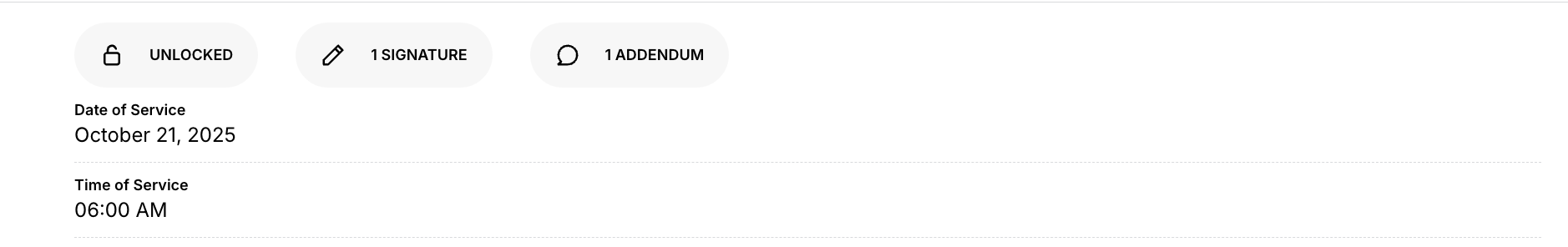 Key statuses now appear more prominently at the top of the chart note, making it easier for providers to confirm whether a note has been signed, locked, or updated with an addendum.