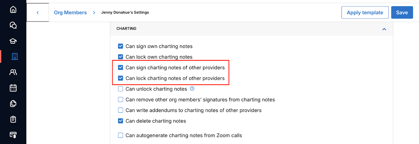 - Ensure that the co-signer has permission to sign other providers’ charting notes