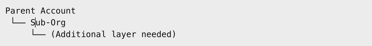 Because nested Sub‑Orgs are not supported, these downstream entities should be provisioned as their own Parent Account.