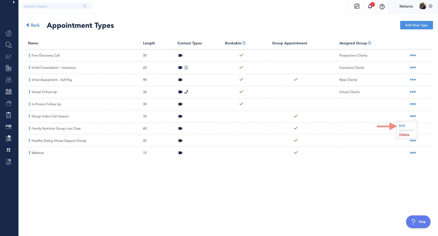 - Select Appointment Types from the menu