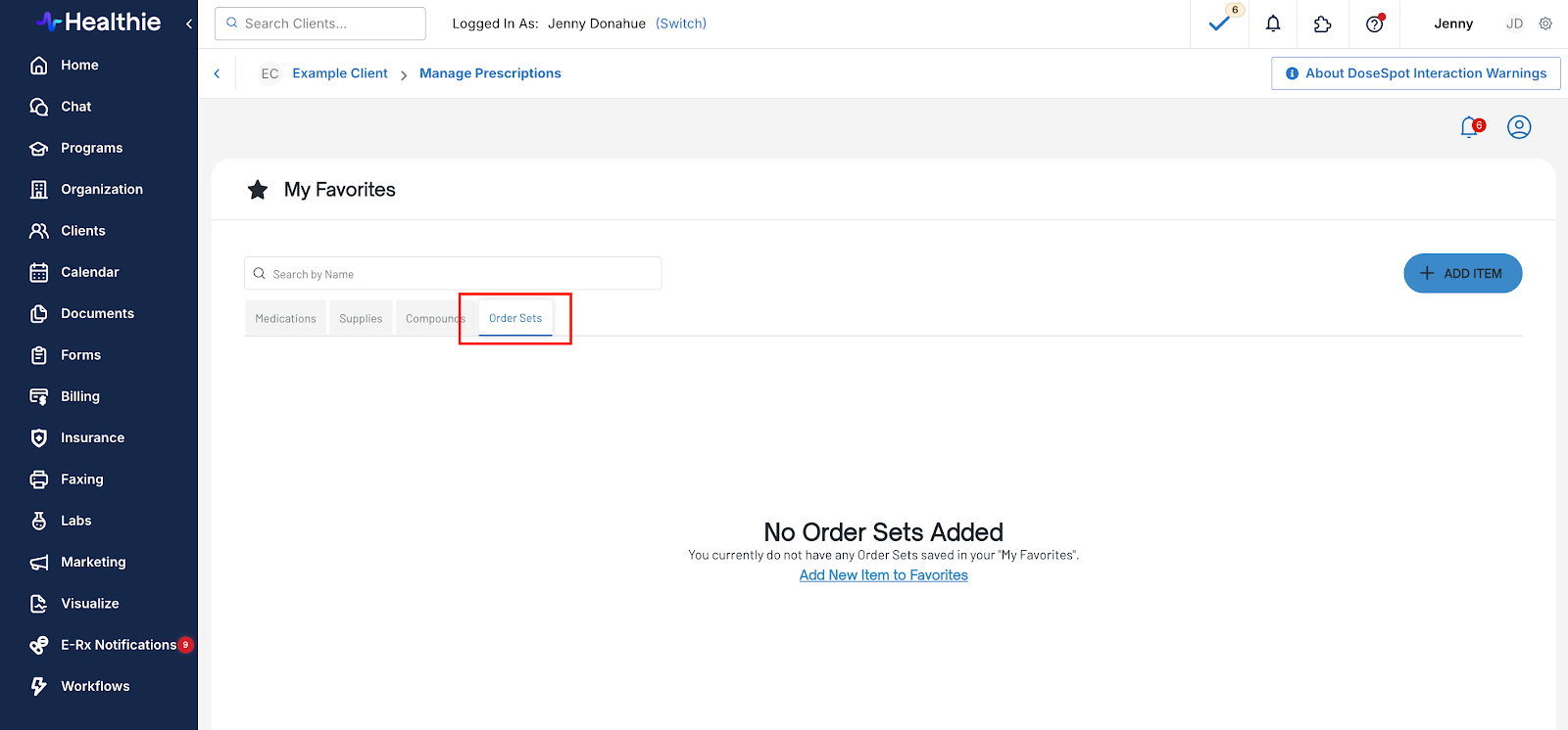 - Navigate back to Healthie and click on the E-Rx Notifications tab