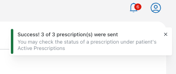 You will see a banner to confirm successful submission and the medications will be listed under the client’s active prescriptions.