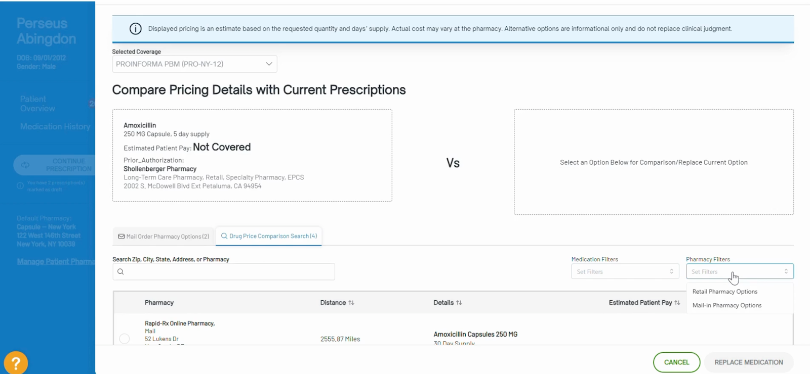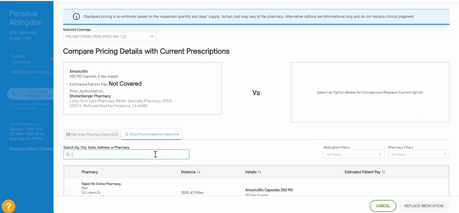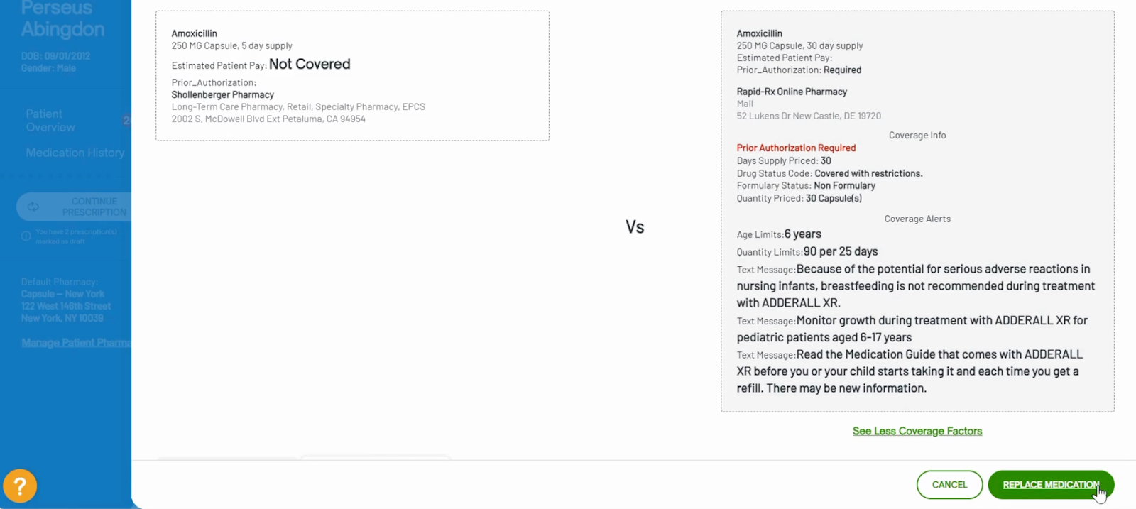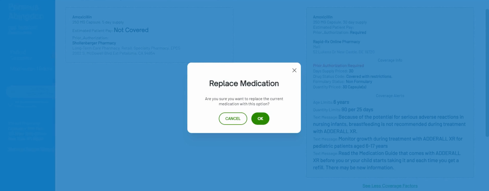 - Click Replace Medication to swap > confirm with OK