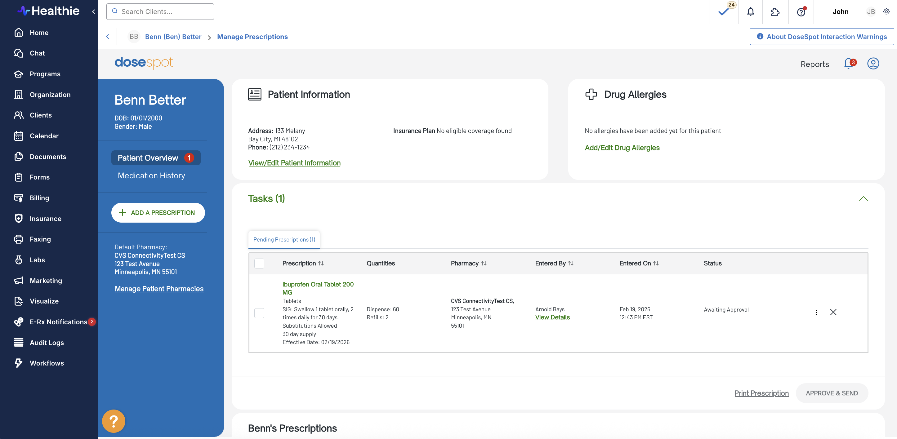- A consolidated pending prescriptions queue across all clients