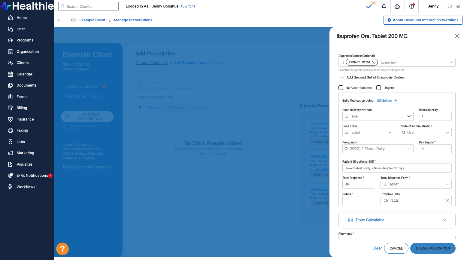 Healthie has updated its DoseSpot integration to give providers access to DoseSpot’s modernized E-Rx interface. The new user interface (UI) introduces meaningful workflow improvements including batch prescribing, draft prescriptions and a Smart Sig Builder. Here is an overview of E-Rx and Healthie.