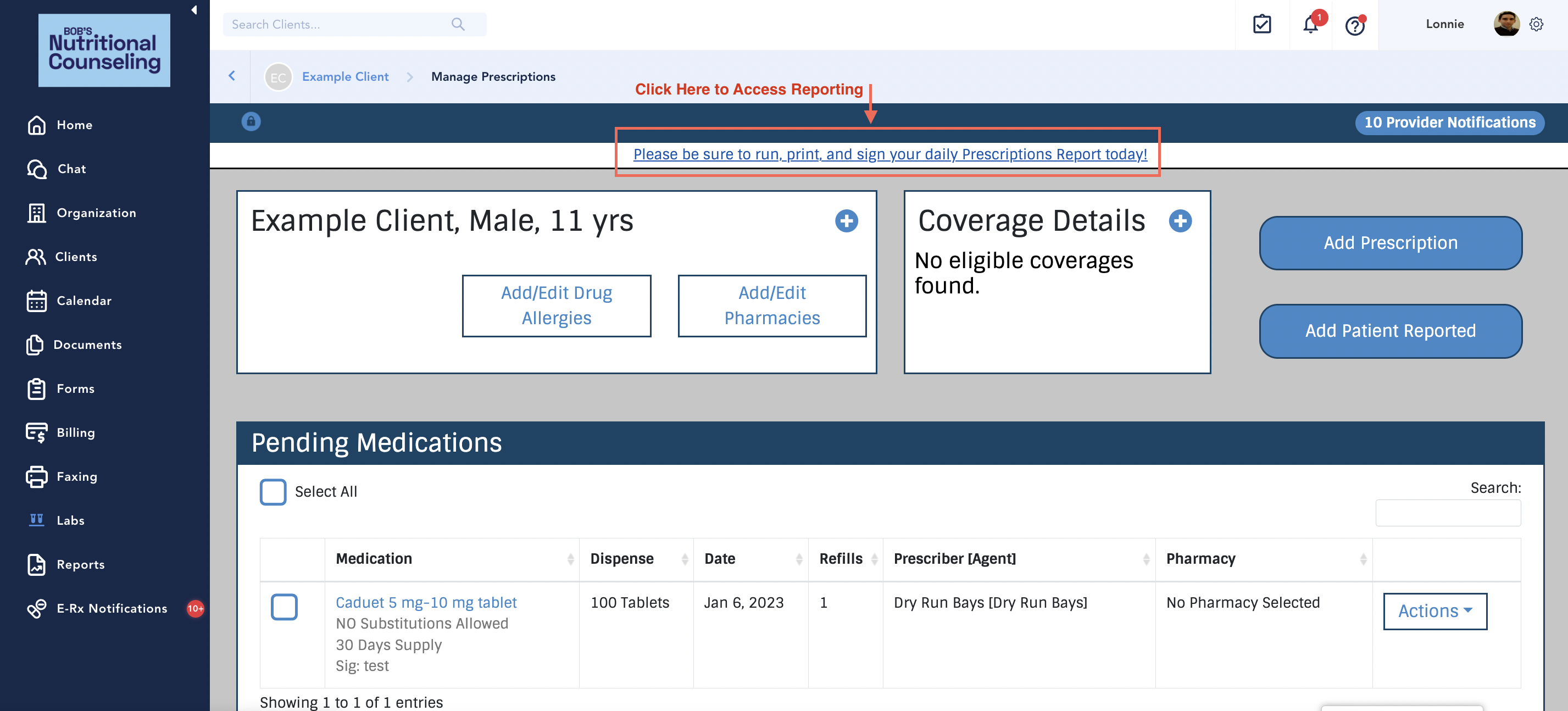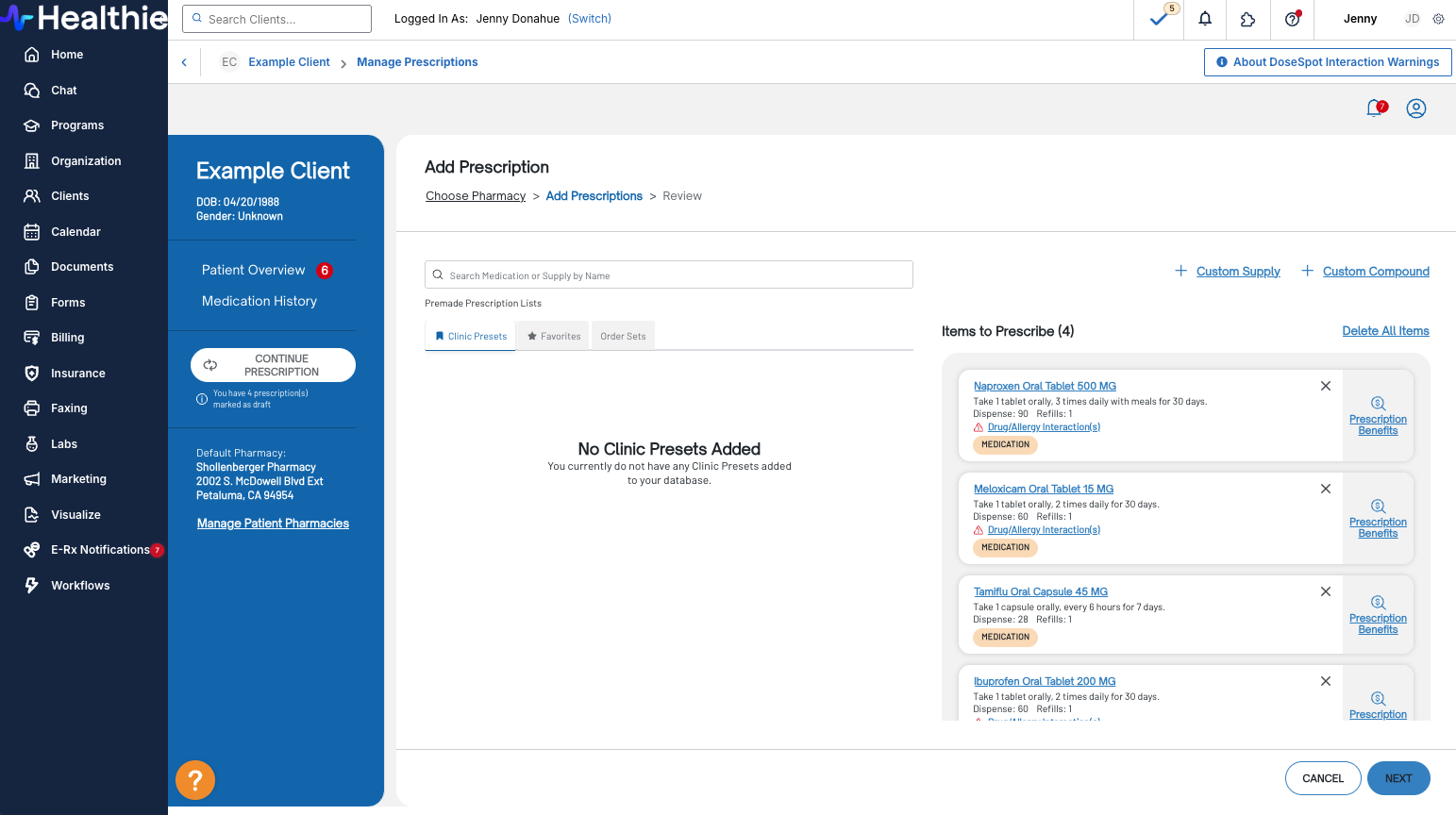 - Add the desired medications and save them as drafts so they appear in Pending Prescriptions for each client