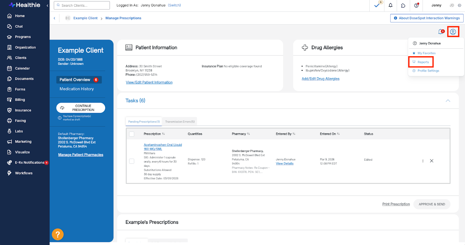 Providers can now review and send pending prescriptions across multiple clients in a single approval workflow, rather than navigating to each client’s chart individually.