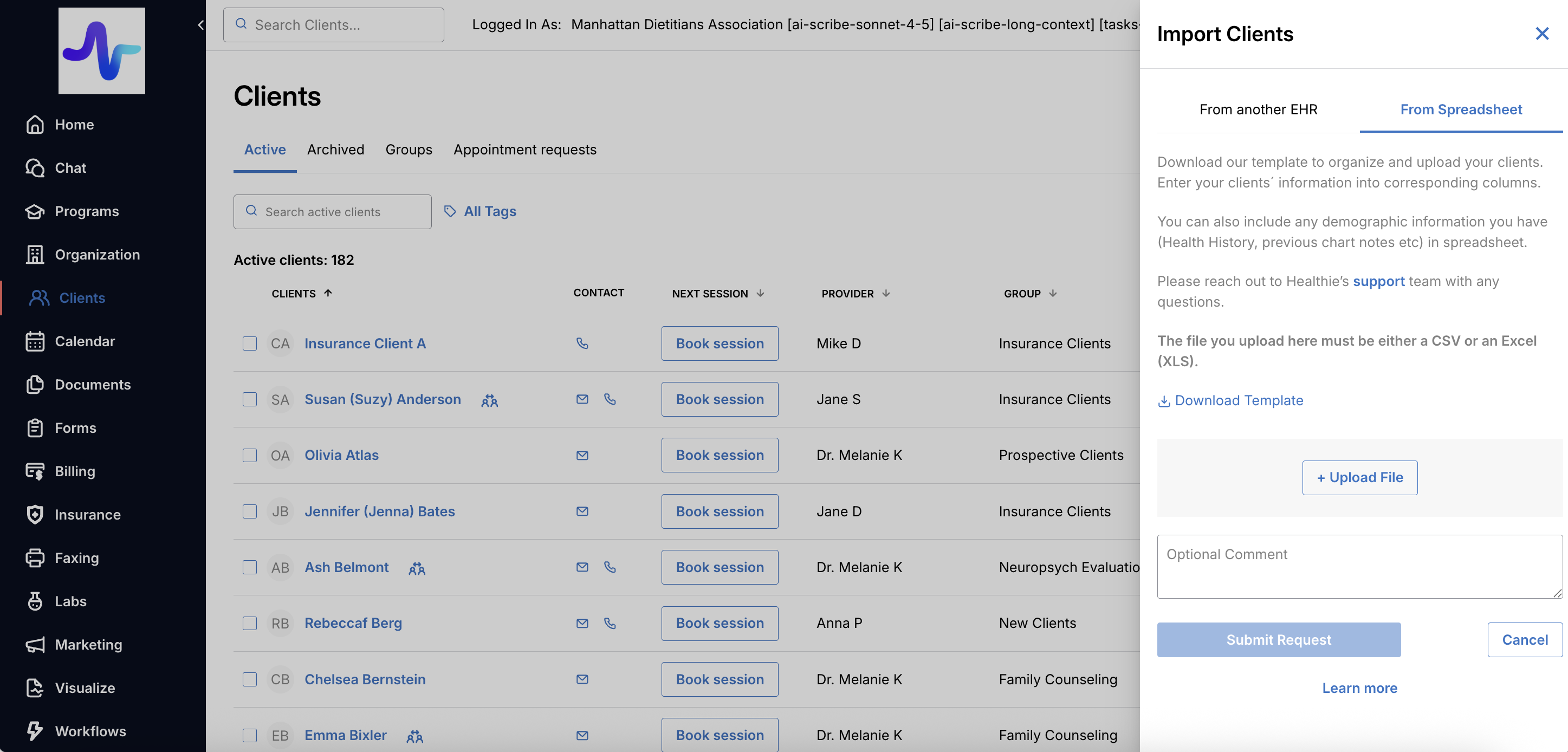 - If importing from an EHR: EHR systems typically offer client files in .zip, .csv, or .pdf format.