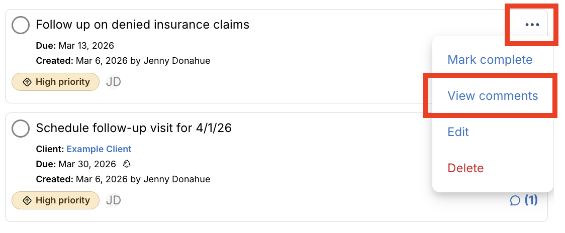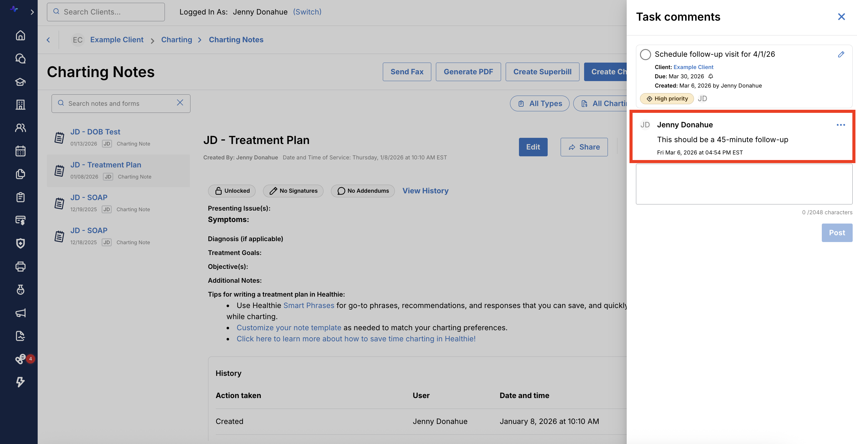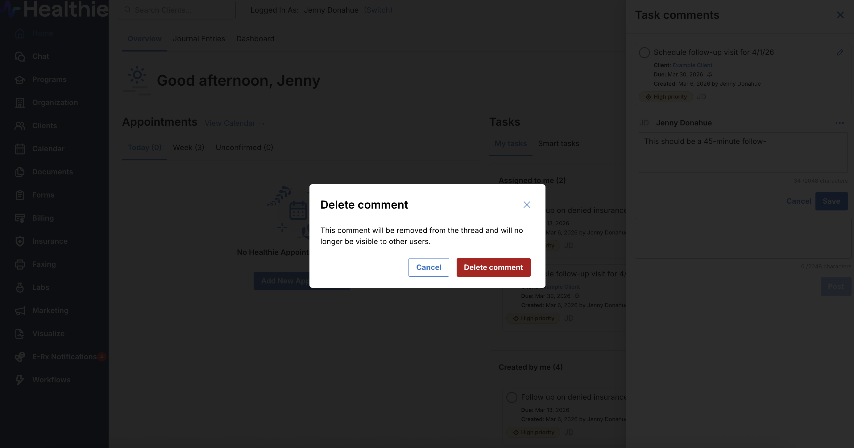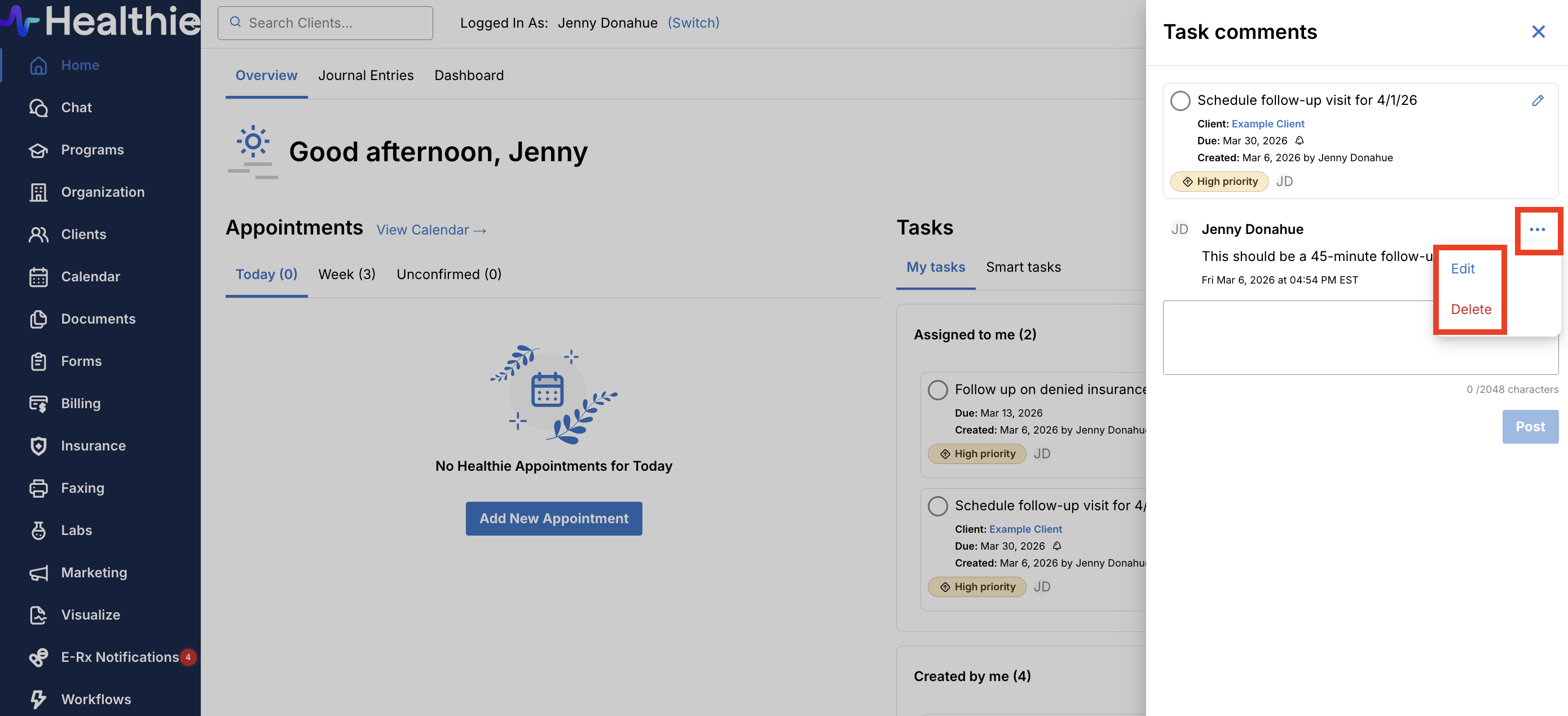 Easily stay on top of administrative and clinical to-dos with built-in task management in Healthie.