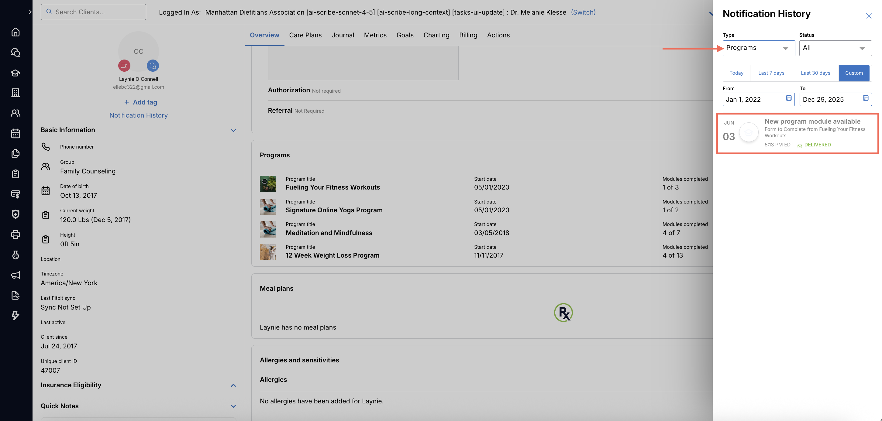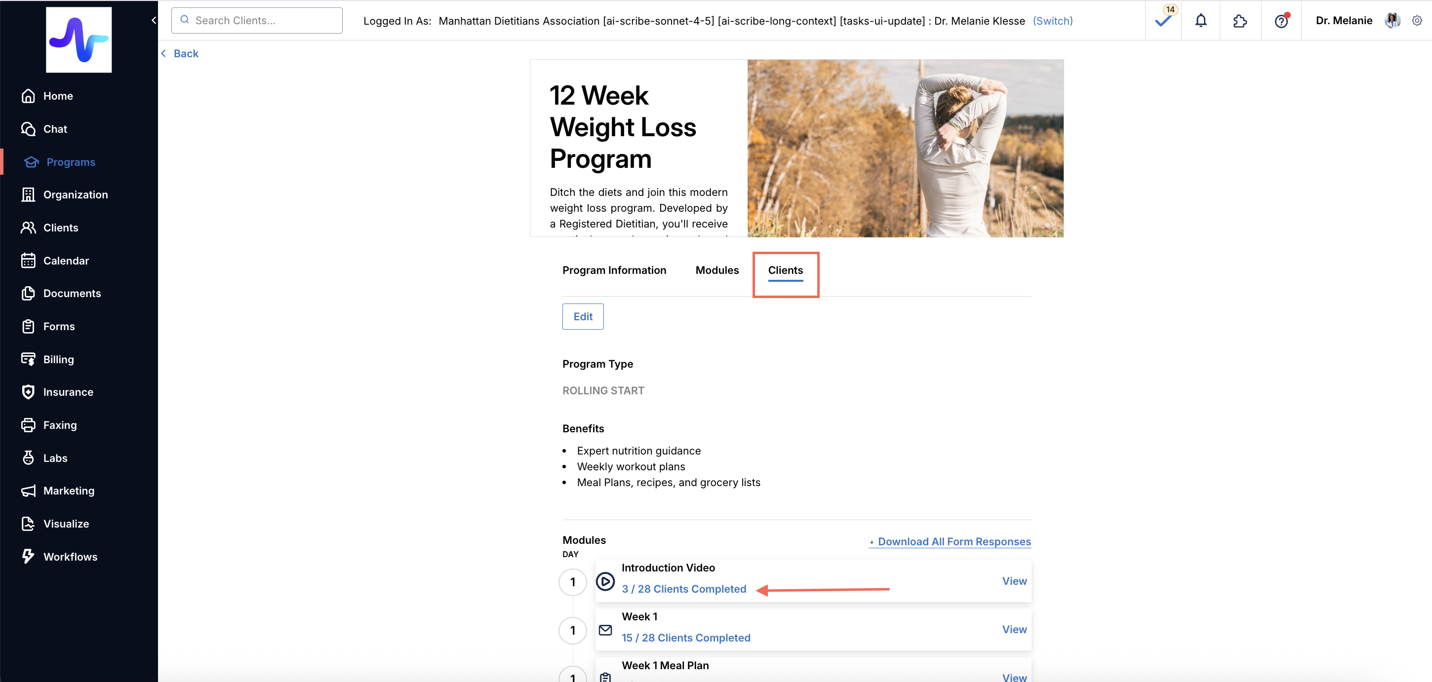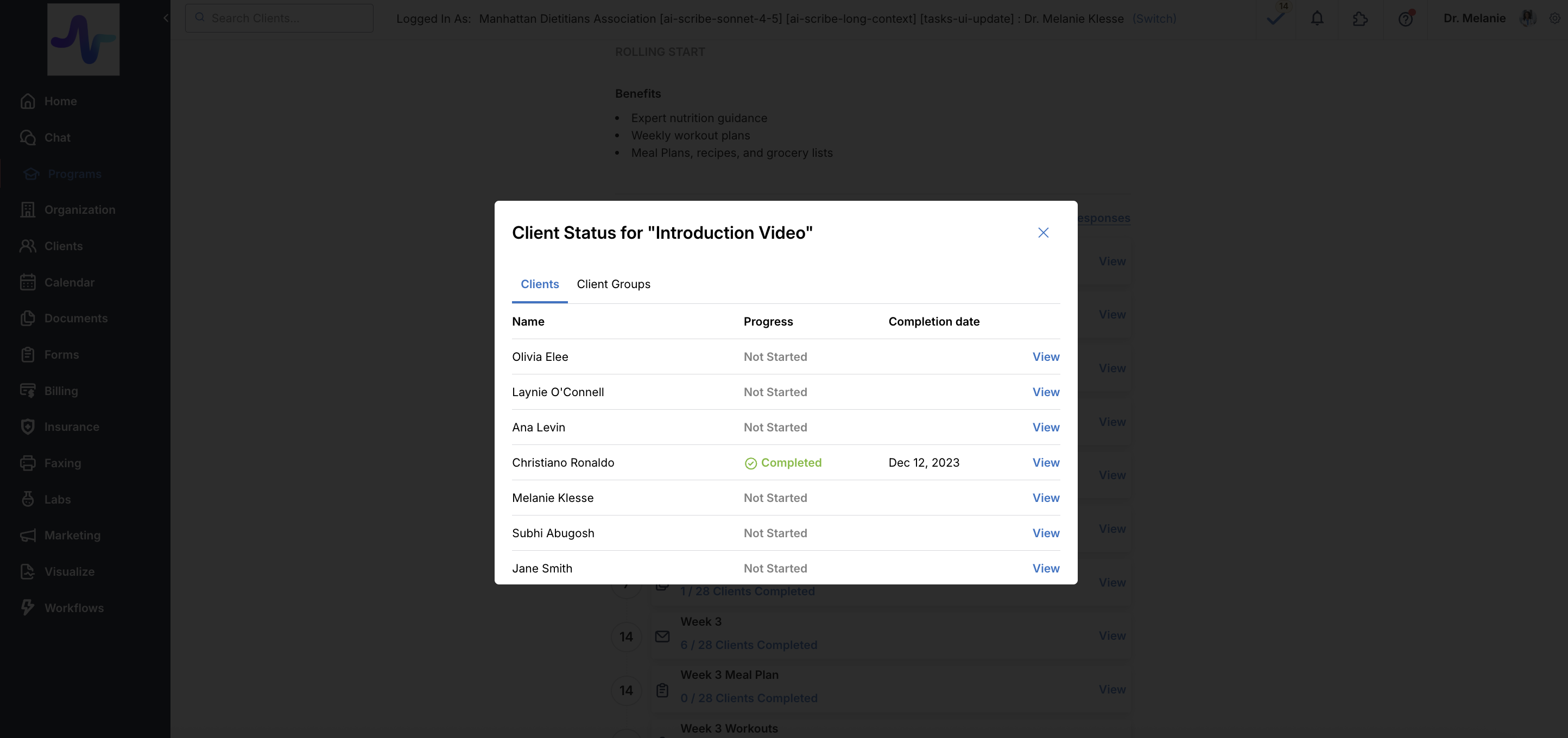 Launching a program allows you to help educate, and work with, several clients at once. Staying informed on your clients' progress is important, so Healthie has built-in tools to help you.