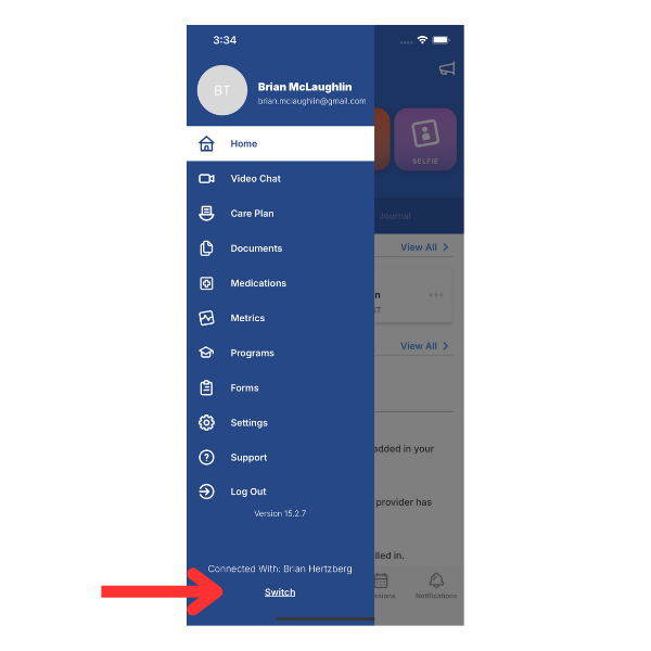 Here is what this experience looks like for your clients on the app. Towards the bottom of your client's navigation bar on the app, there is an option for a client to switch their account.