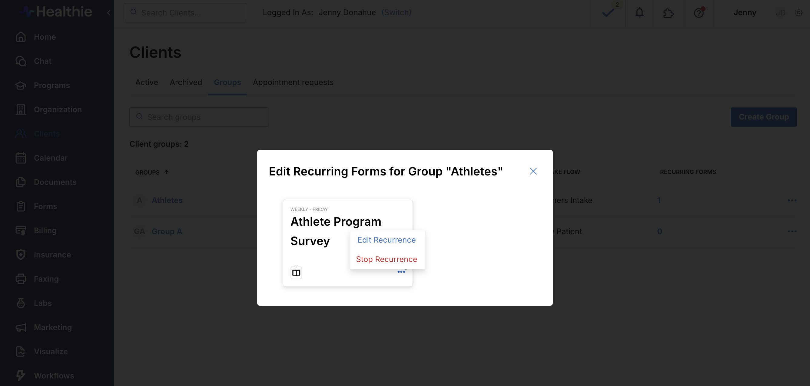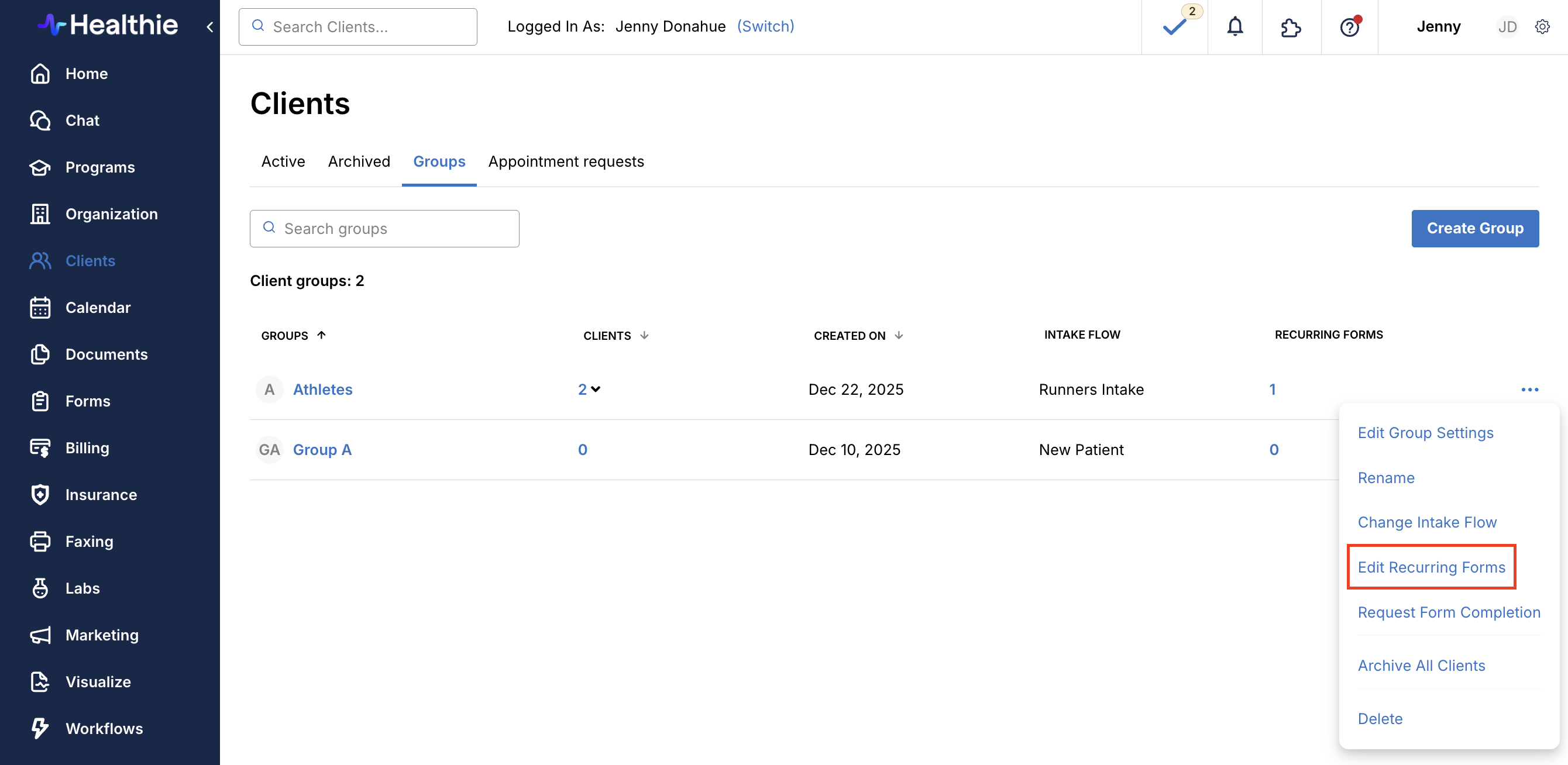 Clients > Groups > [...] > Edit Recurring Forms