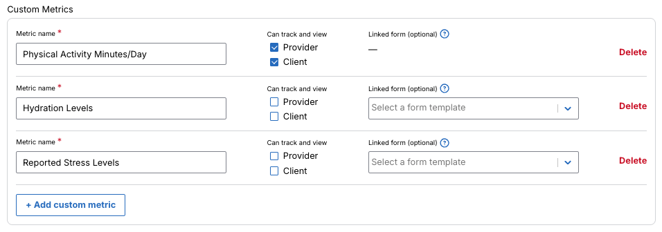 - Set who can track and view the custom metric by checking the Provider and/or Client boxes