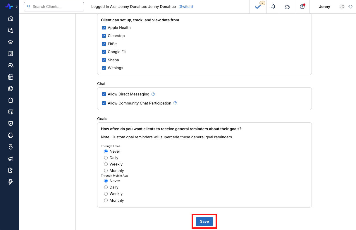 - Adjust a client's particular settings by checking/unchecking the metrics you'd like them to track
