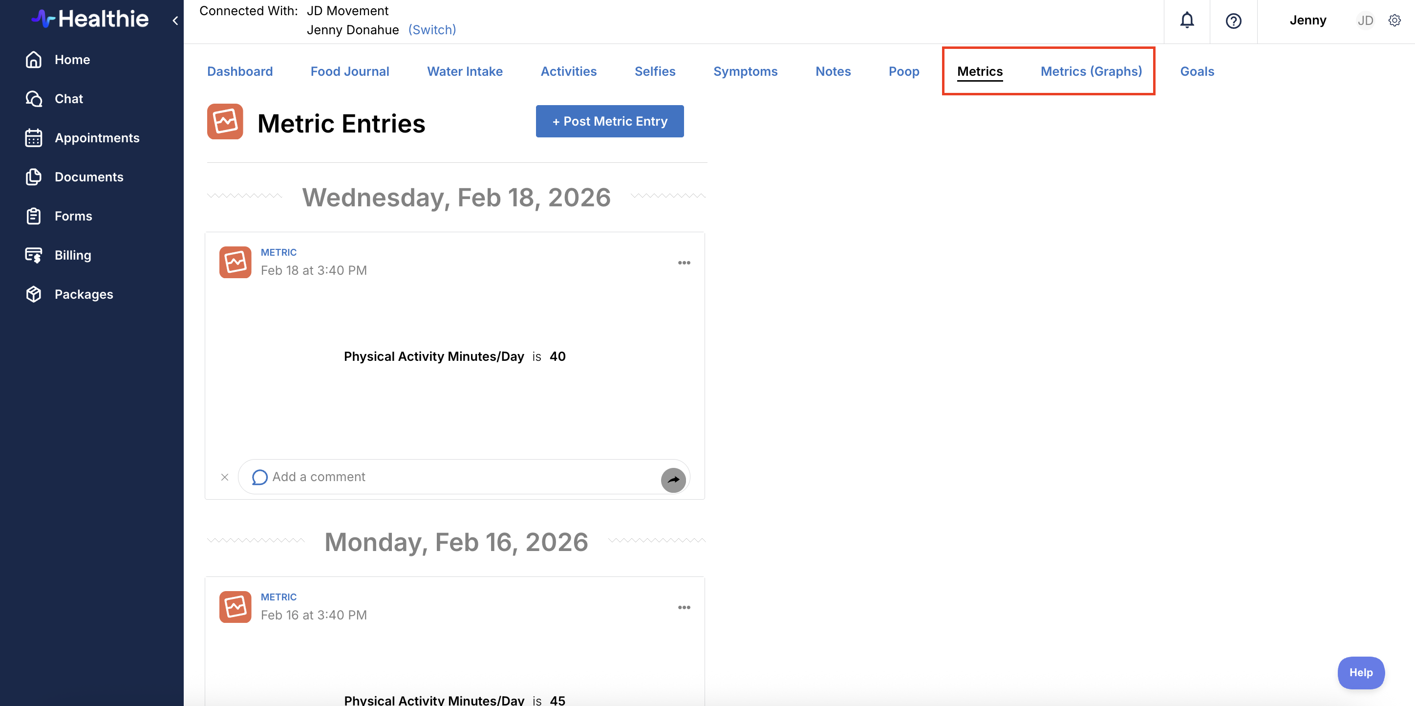 In addition to the default metrics included within the Healthie platform, you can add your own metrics that you would like to track for any or all of your clients.