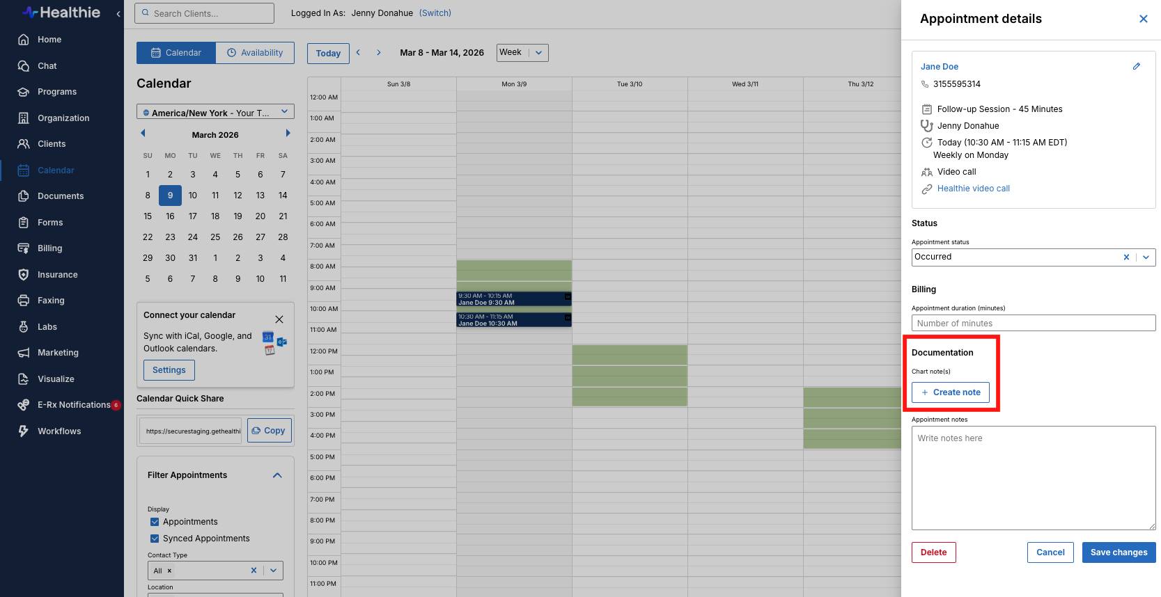 Healthie makes it easy to track which sessions you have completed charting for vs. those that still need to be done.