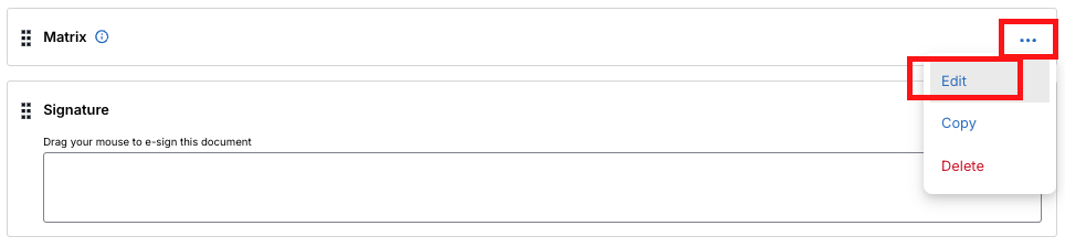 Once the Matrix field is added to your form, you'll need to edit it. Click [...] > Edit within the form field.