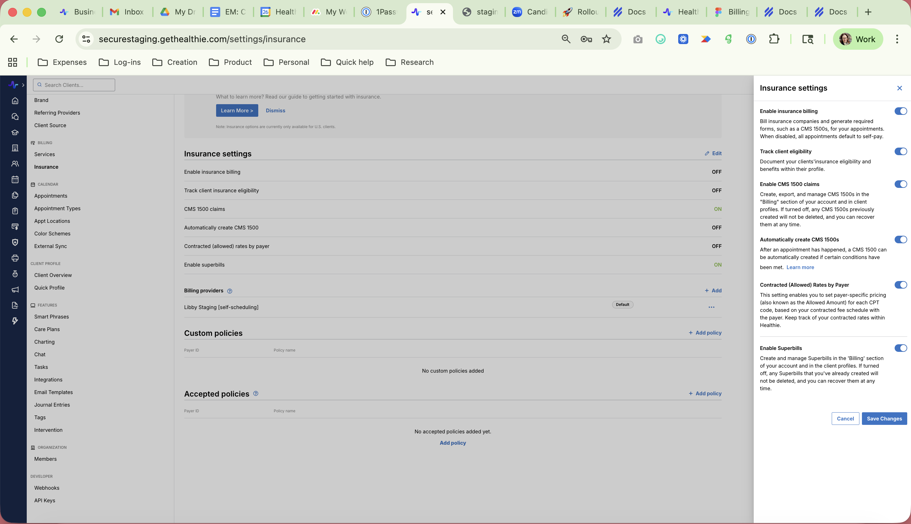 Healthie is designed to be highly customizable, with dozens of settings that can be managed for your account, including insurance preferences. Manage your insurance, CMS 1500 claim, and Superbill settings.