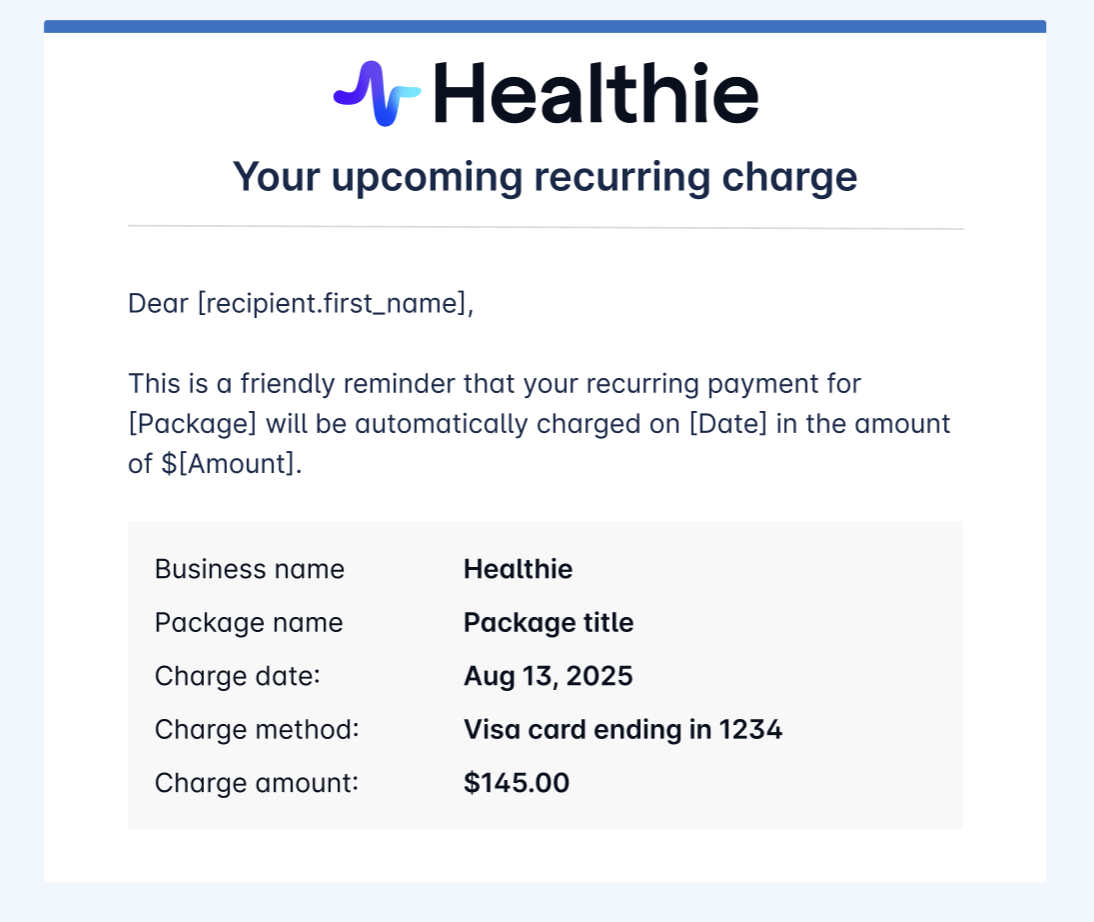 - Emails from Healthie are white-labeled meaning that they contain your company's brand and logo by default.
