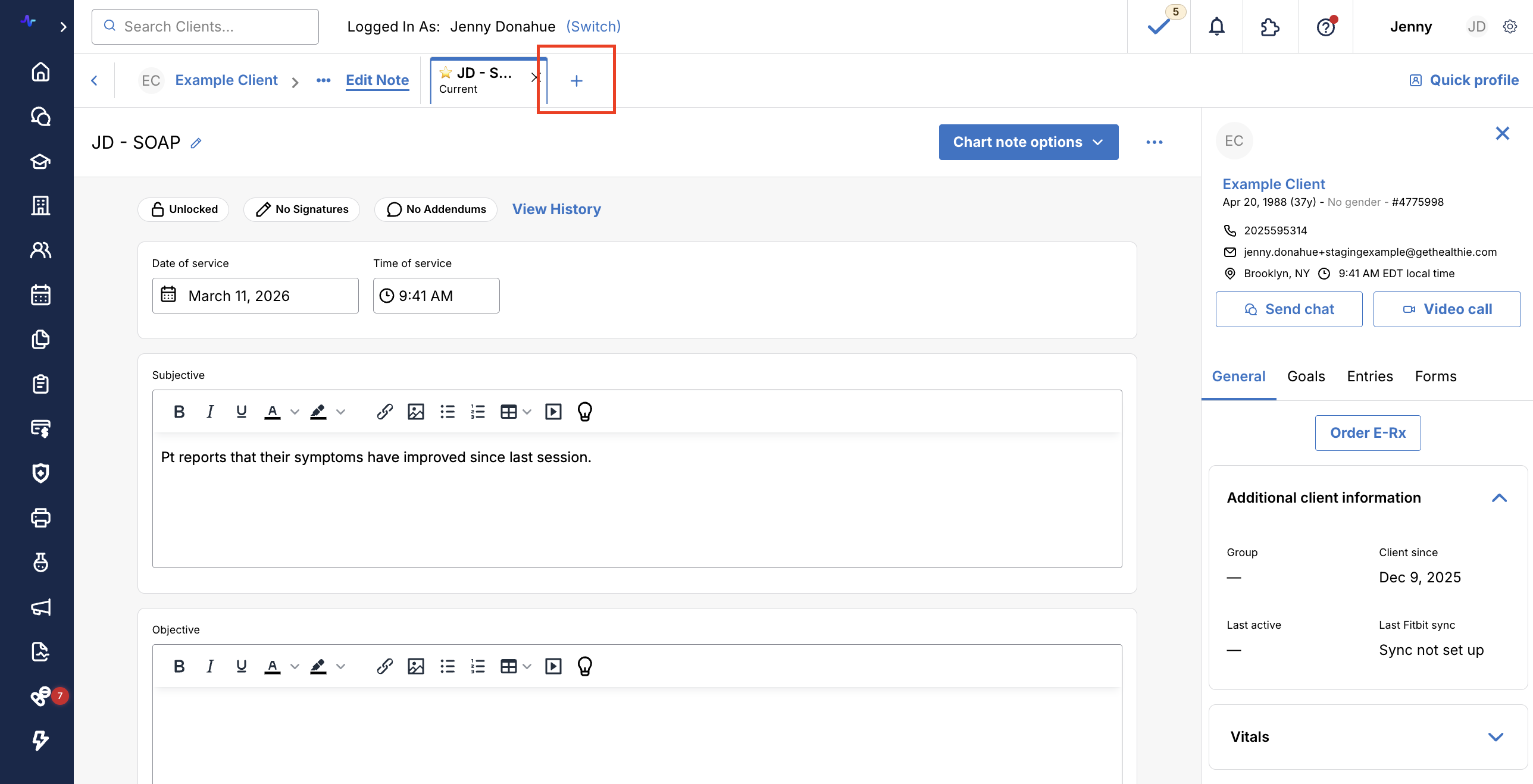 For many providers, having Healthie open in multiple browser tabs can be a useful part of their workflows. In the event that the same charting note is open for a client in multiple browser tabs, providers will now see a notification "Newer Version Available."